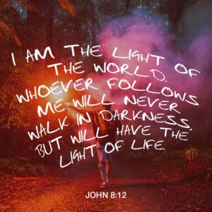 When Jesus spoke again to the people, he said, “I am the light of the world. Whoever follows me will never walk in darkness, but will have the light of life.”