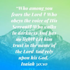All day  08/06/2020 ![]() “Who among you fears the Lord ? Who obeys the voice of His Servant? Who walks in darkness And has no light? Let him trust in the name of the Lord And rely upon his God. Isaiah 50:10 NKJV